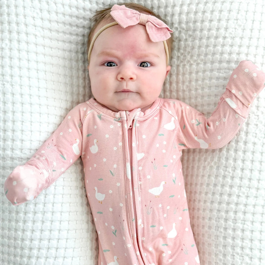 Stretchy bamboo material allows for easy-on-&-off & easy transition from night to day. Keeps your little one a few degrees cooler in summer & a few degrees warmer in winter. No Harsh Chemicals. Buttery Soft. High Quality Bamboo