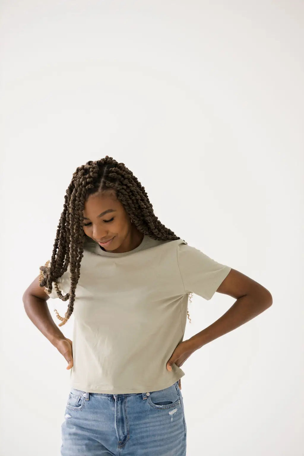 Aria Bamboo Casual Cropped Short Sleeve Top - Aqua Mist