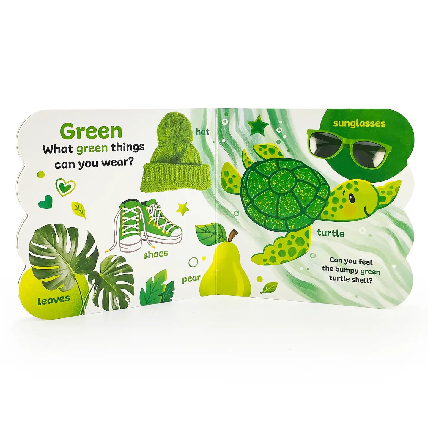 Babies love to touch and explore as they see and hear colors! Photos of real clothes, food, and animals, plus bright colorful illustrations are fun to look at and will keep your toddler engaged. Sensory touches and peek-thru holes make this first words book a favorite with curious little boys and girls. Perfect gift for baby showers, birthdays, holidays, little animal lovers, and more - a great first introduction to books with touch-and-feel elements! Check out more touch and feel board books from Cottage Door Press!