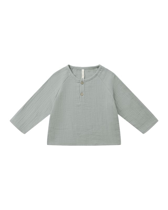 Our Zion Shirt, crafted from soft cotton gauze, features a boxy fit, long sleeves, and a button-front closure for easy wear. Pair with our Woven Pants for a coordinated, dapper look.