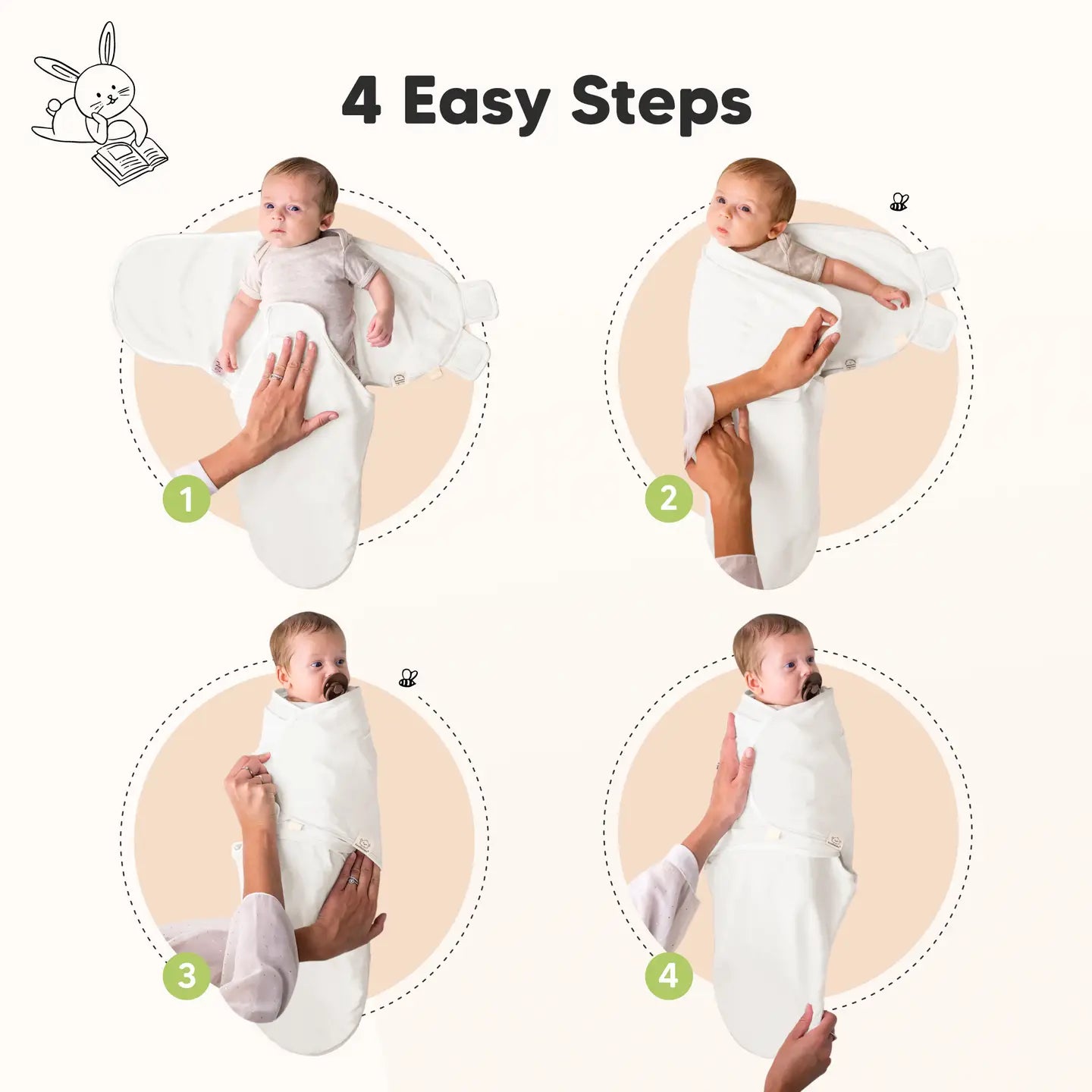 - Easy 4-step swaddle wrap with strong and adjustable hook & loop closure