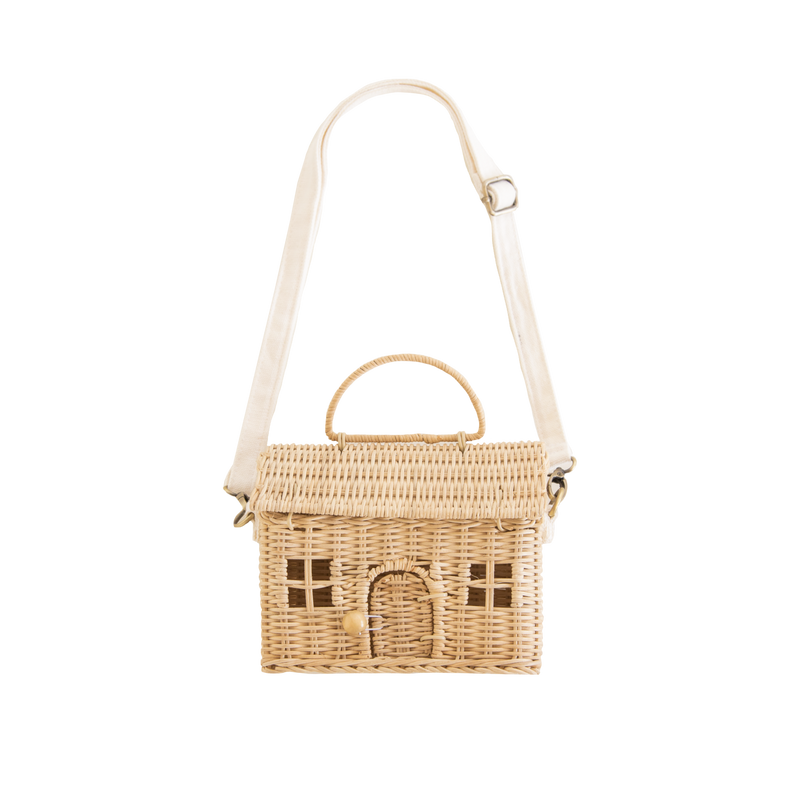A little house-shaped bag for kiddos on the go! Smaller and more compact than the Casa Clutch, the Casa Bag comes complete with a removable and adjustable fabric strap making it the toy accessory for every adventure. Handmade from 100% natural Rattan, the Casa Bag opens at the roof and door for easy storage of all their tiny trinkets.