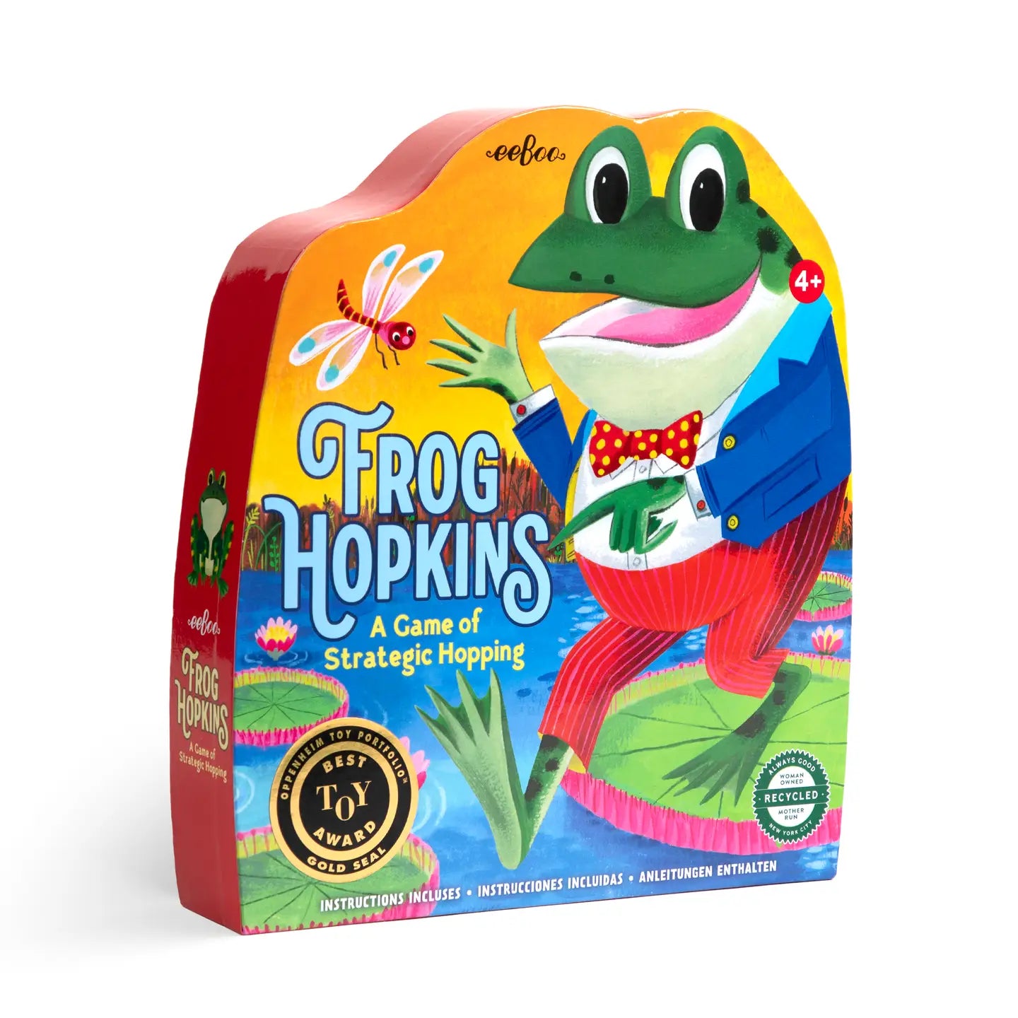 A simple, satisfying game of spatial intelligence and strategic blocking. Players take turns placing and hopping their own frogs to earn dragonflies. Easy instructions and scalable rules engage the whole family for any level of play. Featuring fresh, playful artwork by Linda Bleck.