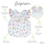 This best-selling “Bapron”, also known as a bib-apron hybrid, full-coverage bib, smock, or apron, is designed for comfort and safety. Because of their comfortable, secure-fitting horizontal ties and their full-coverage design, Baprons are the perfect companion for mealtime, art, and sensory play! Our fabric is a durable-yet-soft waterproof fabric that is quick-drying, stain resistant, machine washable, and 100% certified baby-safe (free of harmful chemicals and safe for even the most sensitive of skin). BapronBaby Baprons are made entirely of high quality eco-friendly fabric. Sizing: Toddler (fits size 6m to 3T) •13” long from front of neck to bottom.