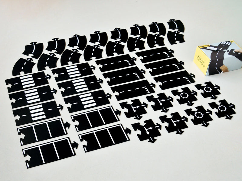 The Highway has twenty-four flexible road parts to lay-out a larger design road of 148 inch length. The shape of the parts are straight, curved and crossed with different road markings on both sides to offer you lots of variation. The high grade, child safe material is tough, unbreakable and yet flexible so that obstacles can be taken and the roads can be laid out on almost any surface... indoors and out! This is one of our bestselling products. Cars are not included in the sets.