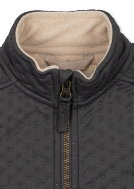 Warm and comfy thermo jacket with soft inside fleece lining and practical storm cuffs. Designed with a raised collar, side pockets, and sturdy zipper closure. A trusted companion for everyday wear in daycare, kindergarten or school.